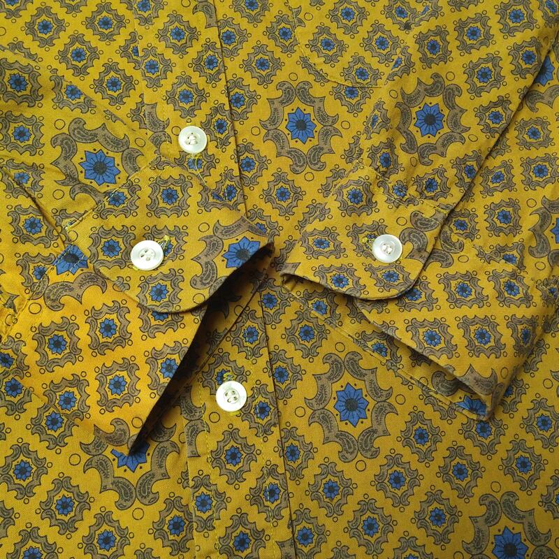 マスタードベースに柄プリント、表記ありませんが100%コットン生地。
