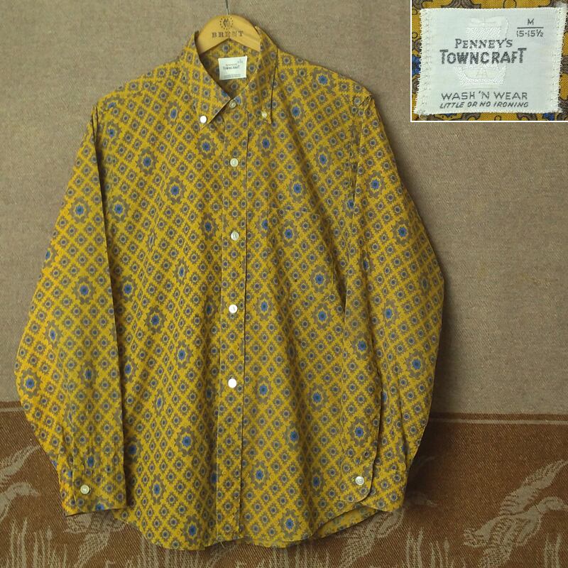 60s TOWNCRAFT B/D Print Cotton Shirt