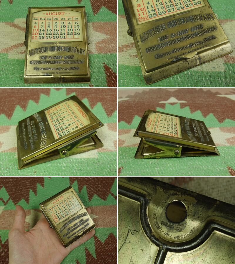 20年代~の“ LEFEBURE LEDGER COMPANY ”のアドバタイジング、カレンダー付きクリップ。ブラス(真鍮)・ゴールドカラーのスチール製。カレンダーの紙もすべて揃っていますので、年度に関係なく通年ずっと使えます。