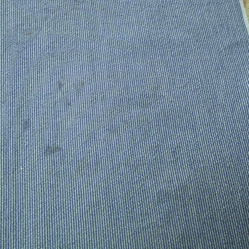 ピンストライプ(ピンヒッコリー)生地、左右生地端と胸ポケット上端はセルビッジ。