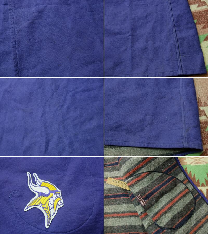 ポケットの中にNFLミネソタ・バイキングスのワッペンが入っていましたので、そのままお付けします。ワッペンは新しい年代のものと思います。実際にバイキングス関係のチームで使用されていたものかわかりませんが、バイキングスと同様のパープルカラーです。
