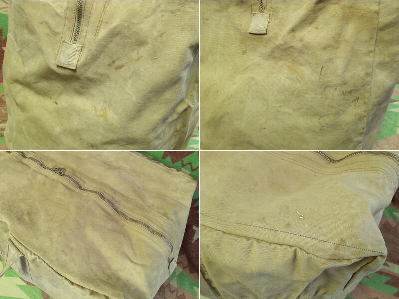ボトムを中心に全体的なシミ汚れ・書き込みなど見られますが、アジと捉えられるものと思います。※洗濯済みですのでクリーンな状態です。全体的に色抜けしていて本来の色を残す内側と比較すると差があります。ボトムなどにごく小さなキズ・ジッパー端サイドに若干のほつれがある程度で大きなダメージはなく、生地はしっかりしていて問題なく使用できるコンディションです。