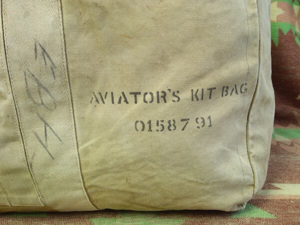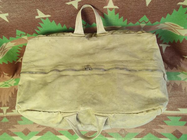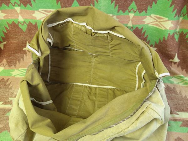 40年代のUSミリタリー・アビエイターズキットバッグ。頑丈なダック キャンバス生地。内側に5つに仕切られたポケットがあります。コの字TALONピンロックジッパー(1940年)。