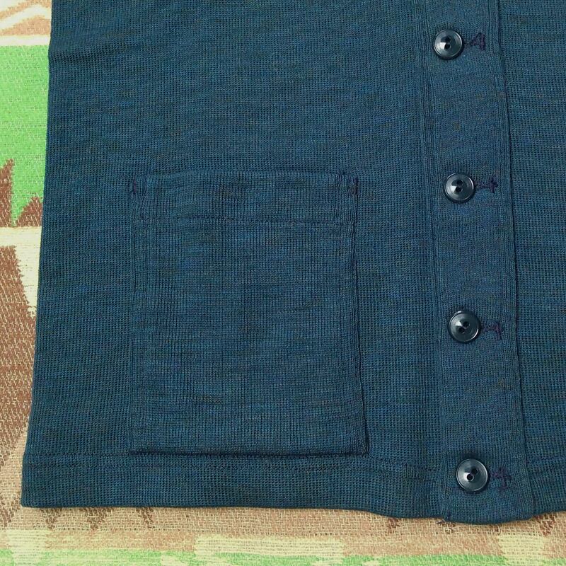 暗いエメラルドのようなミックスカラーニット、68%ウール×32%コットン。