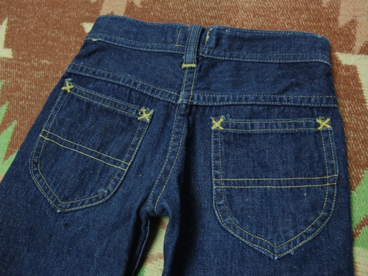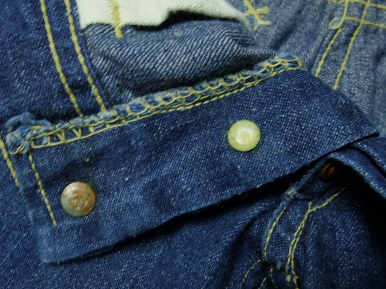 ご覧のとおり裾は切りっ放しです。ボタンに若干の錆び・股に小さなダメージがあるくらいで、気になるダメージ等は特にありません。色もまだ濃い状態です。