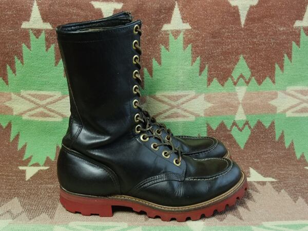モックトウ、レザーシューレース、ブラスアイレット、内側ムートン張り、ストームウェルト。なんといっても赤いラグソールが目を引きます。おそらくですが、製造はエンディコットジョンソンでモンゴメリーワードを通して販売されていたものと思います。