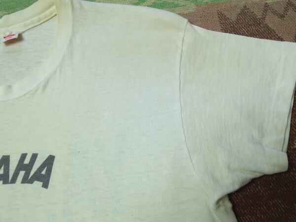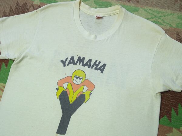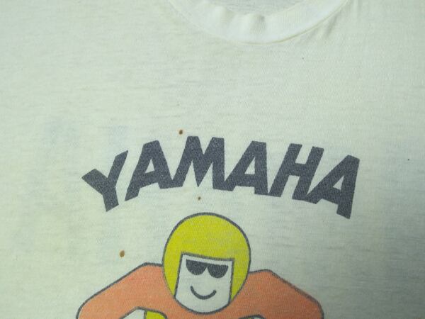 タグに手縫い補修あり(間違いなくオリジナルのタグです)。首周りや肩・脇など中心に全体的な黄ばみ・シミ汚れが見られますが、当時リアルにバイク遊びに興じていた雰囲気と捉えられると思います。首うしろにピンホールがあるくらいで大きなダメージはありません。アジのあるアイテムを好まれるヴィンテージ古着慣れされた方でしたら、十分着こなせると思います。