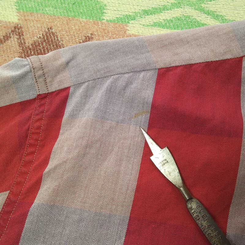 淡いトーンのブロックチェックに赤いワイドストライプ。こういったコットンシャツとしては厚手の2×2のインポートファブリック。ワイドストライプでしっかりした生地感がすごく良いシャツです。