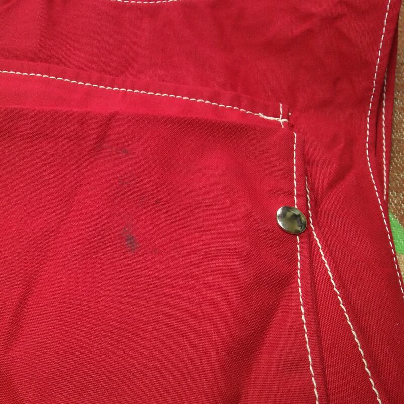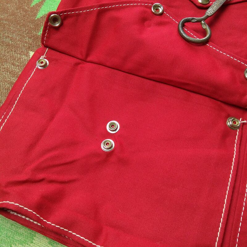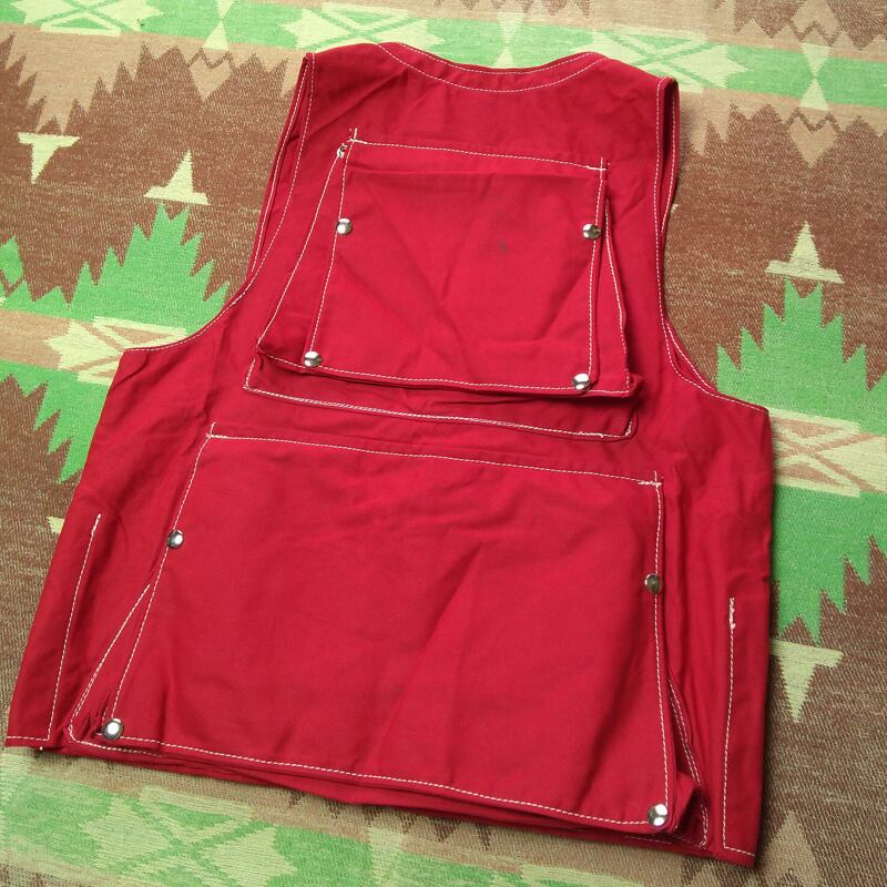 80年代前後のワークベスト。厚手で頑丈な赤色のキャンバス ダック生地(ナイロンかポリ混?)。背中に2段のバックパックが付いた特徴的なデザインです。森林サービスなど山関係のワーク用と思います。