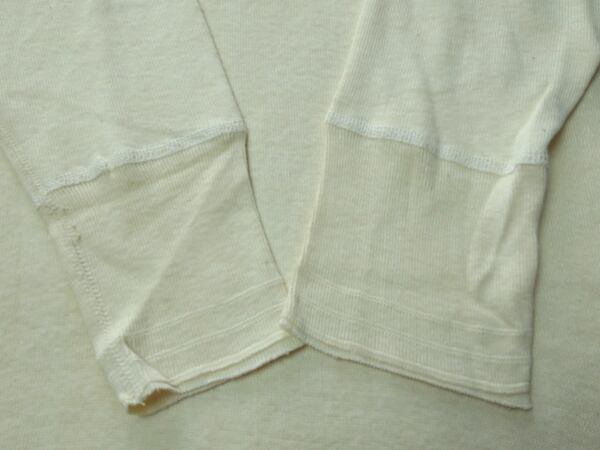 ボタン周辺のコットン当て布・肩の切替・首うしろの当て布・編み切替がある袖リブ、などOLD感抜群、希少なデッドストックです。