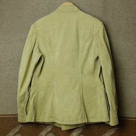20年代前後頃の” SIGMUND EISNER ” ユニフォームジャケット。第一次大戦以降のチュニックもしくはBSAのユニフォームと思われます。マチがある4パッチポケット、ウエストがシェイプしたこの時代らしいシルエットです。ベージュ系のドリル生地(コットンツイル)、ボタンはすべてメタルのチェンジボタン。