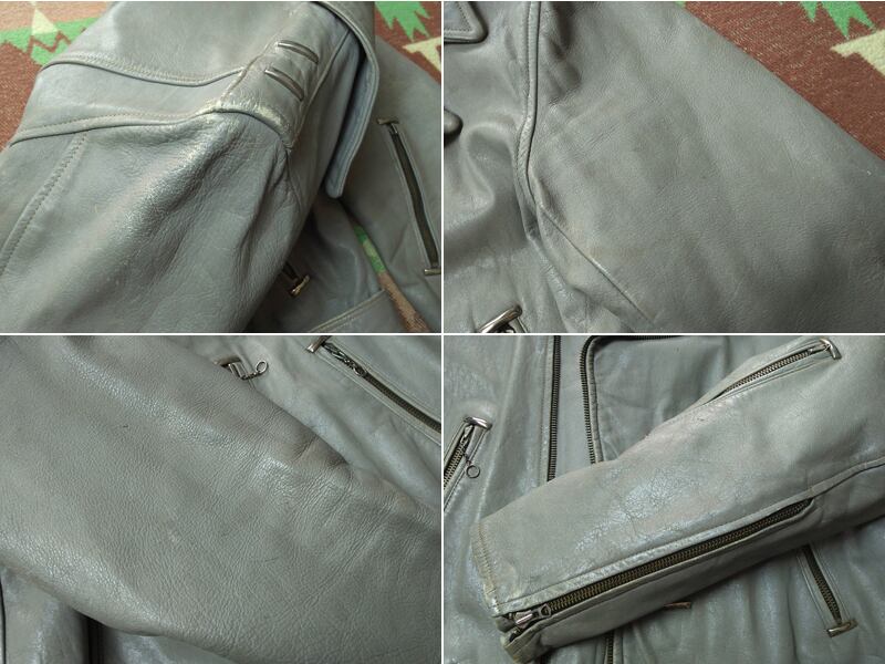 ダブルライダースで黒・茶以外のカラー物のホースハイドとなると、稀に白があるくらいでこのようなグレーは皆無です。袖のポケットや正面ポケット配置などディテールも良く、コレクターの方にも自信を持ってオススメできるスペシャルなライダースジャケットです。
