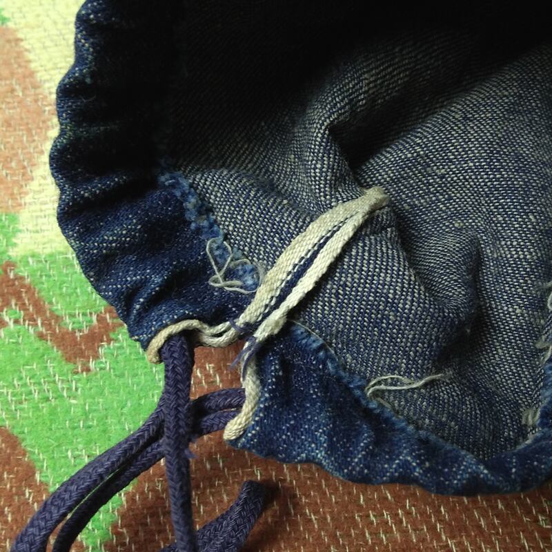 紐は擦れて弱くなった部分があります。結んで補強あるいは交換等で対応できると思います。底近くに小さなダメージはありますが、大きなダメージや気になるシミ汚れのない良い状態です。