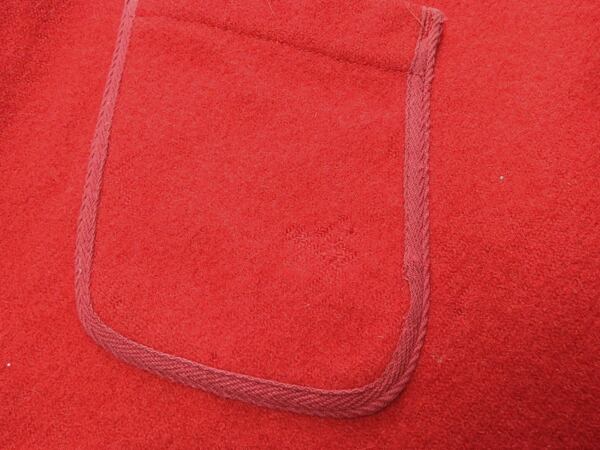 左胸や右裾に複数ダメージがあり、そのほか小さなダメージや表面虫食いが見られます。パイピングは左アームホールにダメージがあり、他も若干のほつれや擦れがあります。赤単色の場合きれいすぎると浮いてしまうので、これくらいこなれている方が個人的には取り入れやすいように思います。アジのあるワーク系など好まれる方には良い雰囲気です。