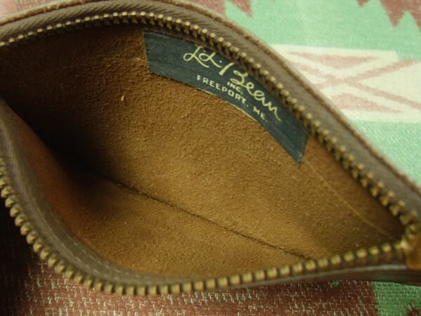 50年代~のL.L.Bean・レザーポーチ“ Bean’s Tobacco Pouch ”(カタログ記載商品名)。良いアジが出そうなOLD感あるブラウンレザー。筆記体黒タグ、TALONジッパー。