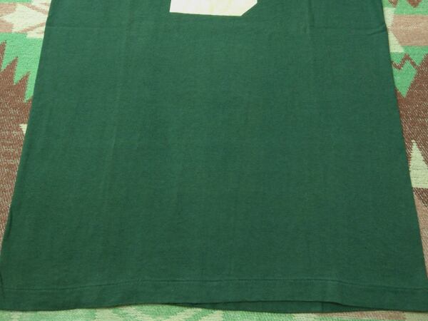 断定は難しいのですが、生地やタグの風合いからデッドストックと判断しています。背中と脇にプリントの成分が出たものと思われるシミ汚れが若干見られます。洗濯しているうちに目立たなくなると思いますし、ヴィンテージ古着慣れされた方でしたら問題ないものと思います。そのほか、多少の薄いシミ汚れはありますが、良好なコンディションです。