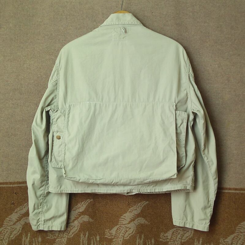ゲームポケットの右上とボタン付け部分にリペアがありボタンが欠損しています。左胸ポケットや袖などにシミ・襟にごく薄く黄ばみが見られますが、大きなダメージやひどいシミ汚れはありません。ヴィンテージ古着慣れされた方でしたら、問題なく着こなせるコンディションと思います。