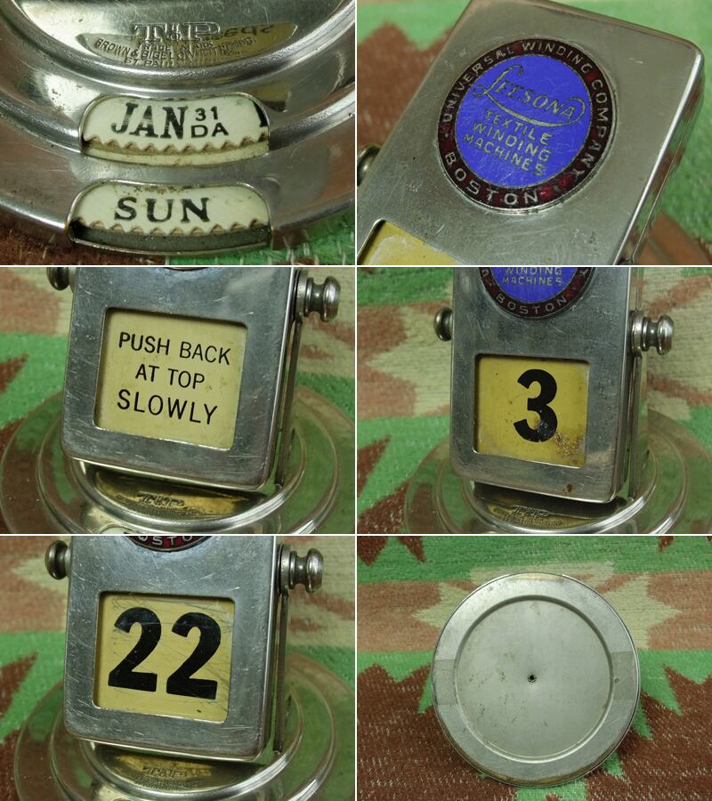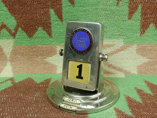 ミネソタ州セントポールのメーカーの“ TipTop ”という製品です。“ PAT PENDG ”刻印。1927年出願・1928年公開のデザインパテントの形状ですので、その頃の物に間違いありません。“ LEESONA TEXTILE WINDING MACHINES ”のアドバタイジング、エナメルのエンブレムが付いています。