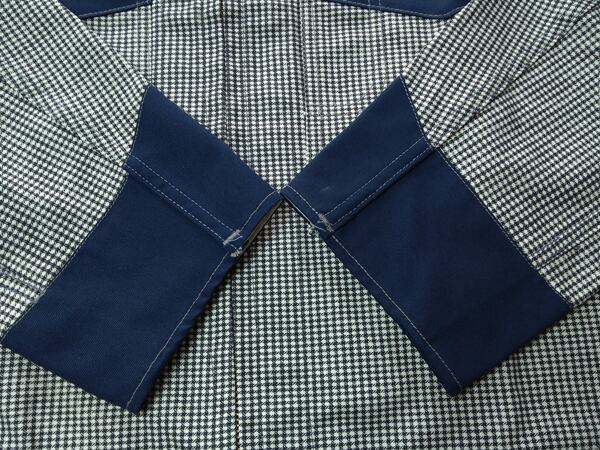 70年代~の≪JEWELL UNIFORMS, INC.≫ワークジャケット。≪HP HOOD≫のミルクマン用ユニフォームと思われます。千鳥格子プリント×ネイビー単色のツートーンカラー、100%コットン生地。TALONジッパー。