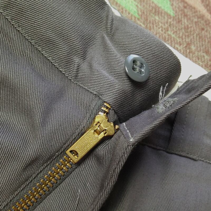 デッドストック。ウエスト前後に若干のシミ汚れ、左膝裏あたりにシミ汚れ?がありますが、洗濯により軽減される程度で特に気にならないものと思います。目立つヤケやダメージ等のない良好なコンディションです。