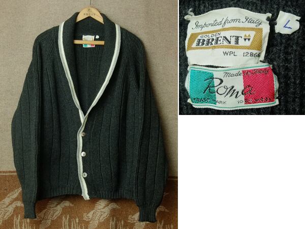 50s~ GOLDEN BRENT Shawl Collar Wool Cardigan L