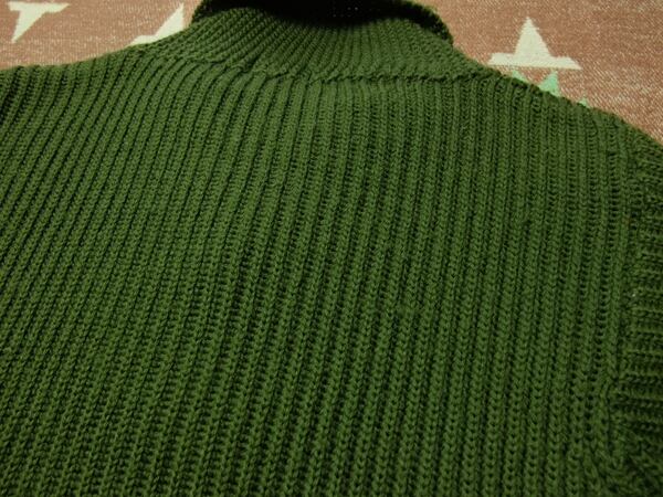 襟を開いたときにループホールがくる辺りにボタンがあったのか穴があります。左袖リブ折り返し部分に穴があります。左肩や袖などに毛糸が出た部分がありますが、気になるようでしたら裏から糸を引っ張って調整すればもう少しなじむと思います。全体的な表面擦れ・毛羽立ち等も見られますが、タグを見ても使用感は比較的少なく思いますし、ニットも良い風合いを保っています。