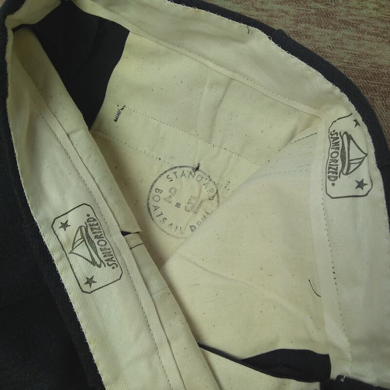 この生地は経験上501と同等くらい縮みます。縮めたい場合はお湯や乾燥機を使用、逆に縮めたくない場合は、冷水で洗い、干す前に引っ張るとある程度キープできます。