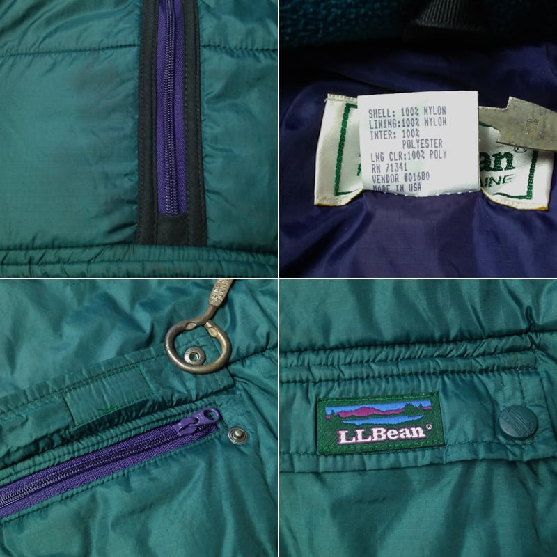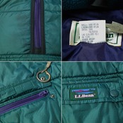 90年代の≪エルエルビーン≫プリマロフト ジャケット。プルオーバー。ポケットを裏返してコンパクトに畳んで収納できるパッカブル仕様です。カラー:ハンターグリーン×パープル(青紫)。MADE IN USA