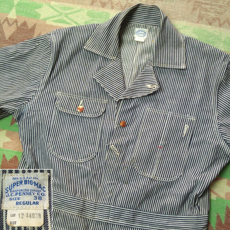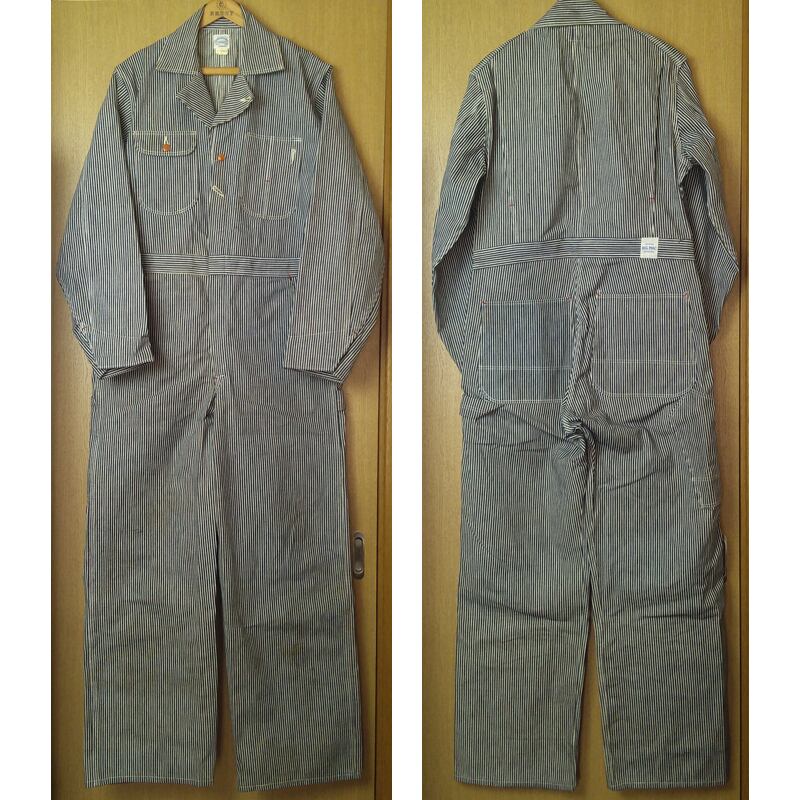 30年代の≪スーパー ビッグマック≫ヒッコリーストライプ オールインワン。Lee WHIZITタイプのジップフロント(TALONジッパー)。30s物に多いポケットウォッチ用ホール付きの左胸ポケット。