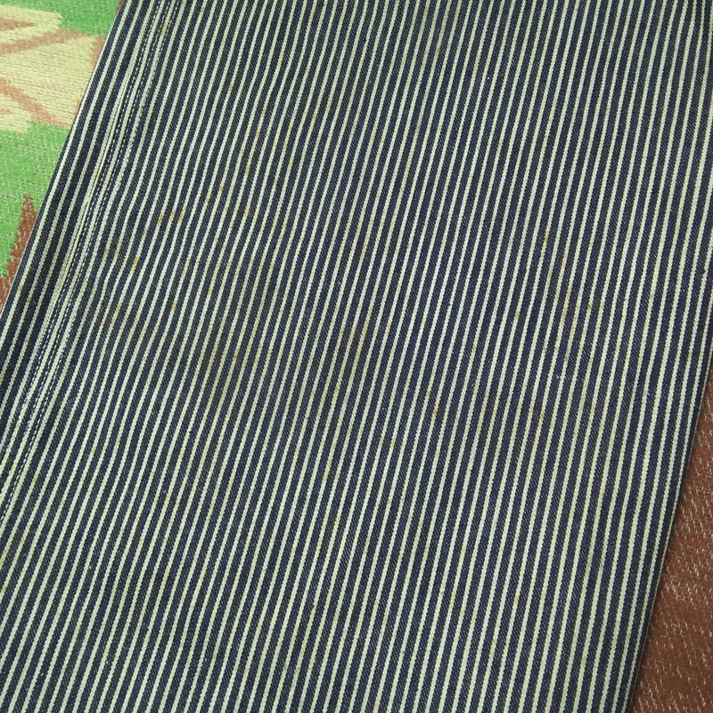 数回着用程度で水通しなしの素晴らしい状態です。生地感はバリっとしていてデッドストックと同様の風合いです。裾にロールアップ痕の軽い擦れがあるくらいで生地ダメージは一切ありません。膝周辺を中心にほぼ全体的に細かなシミがありました。ヒッコリーのためじっくり見ないとわからない程度で全然目立ちません。デッドストックに近い極上コンディションと思っていただいて良いと思います。