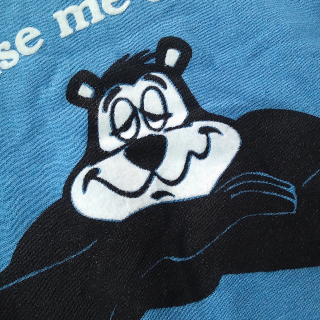 60年代~の≪ハムズベア≫プリント スウェット。チャンピオン プロダクツタグ、50%アクリル×50%コットンボディ。プリントは黒い部分が油性、白い部分はフロッキーです。