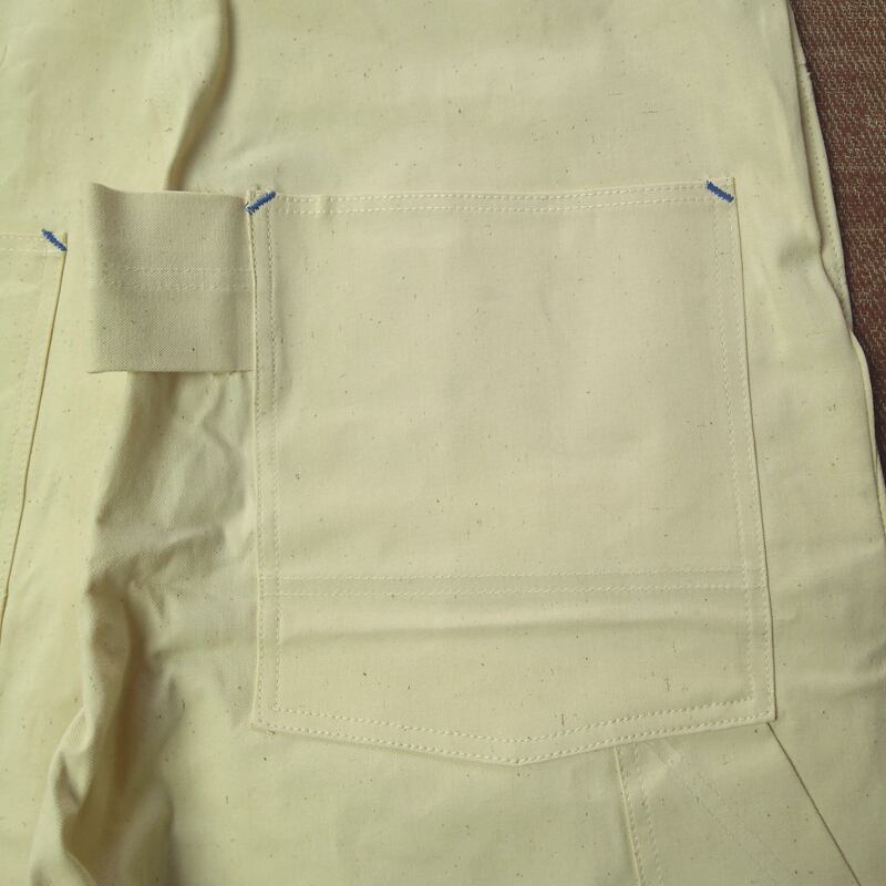 山型ビブポケット、ダブルニー、股のボタンはクラウンの物が付いていてちょっとうれしいポイントになるかと思います。ユニオンラベルはブランド独自の物を使用しています。
