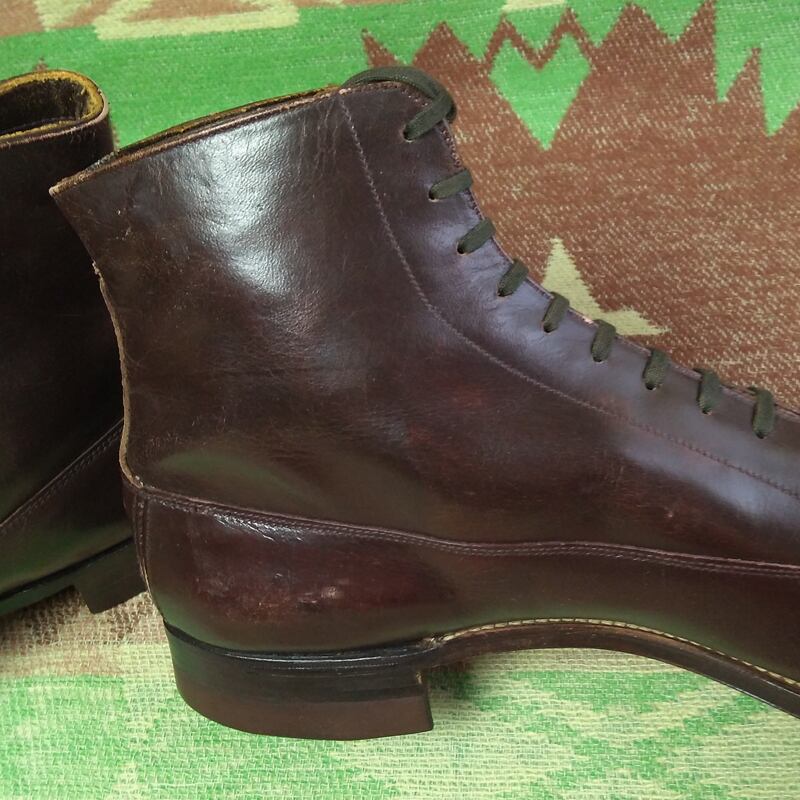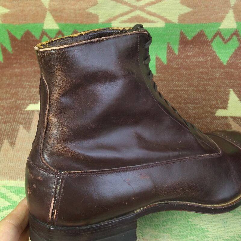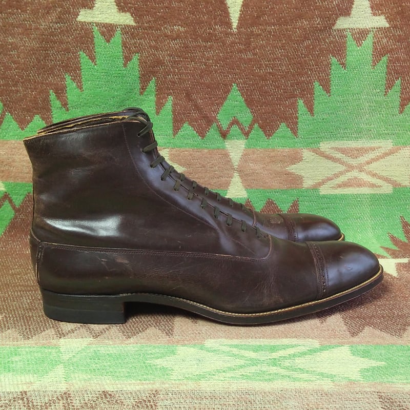 20s~ Silver Bell Cap-Toe Brown Leather Boots(9 D)DEAD-STOCK
