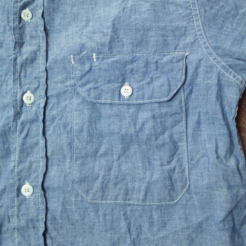 細身のサイズをお探しの方にオススメのマチ付きシャンブレーシャツ、コンディションも良好です。
