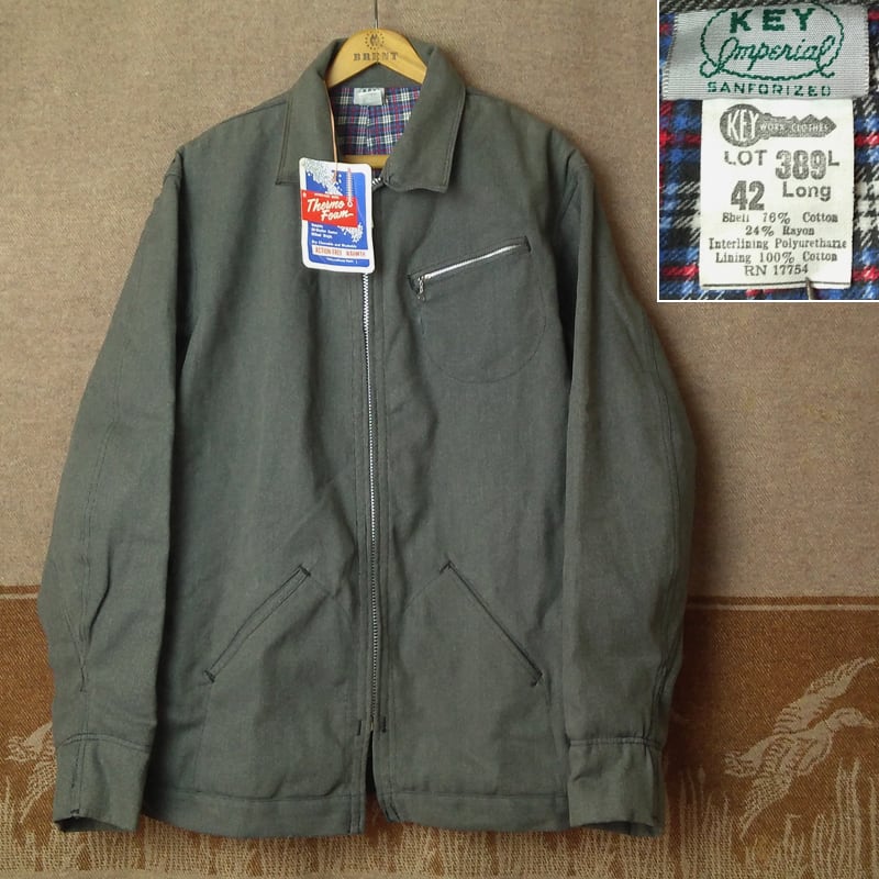 60年代の≪KEY Imperial≫LOT-389・ワークジャケット。裏起毛ウィップコード生地。76%コットン×24%レーヨン表記ですが、オールコットンとあまり大差がない生地感に感じます。チェックのライトネルライニング、袖口内側はリブ付き。PRENTICEジッパー。
