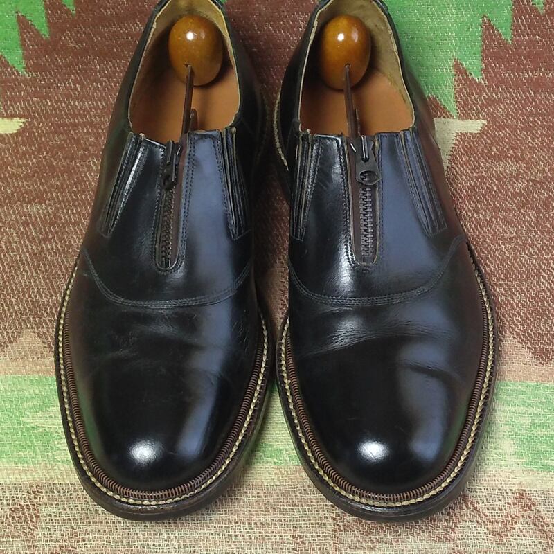50年代の≪トム マッキャン≫レザーシューズ。ブラックレザー、ジップアップデザイン(TALON)。アウトソールはMEL-LITE樹脂ソール。