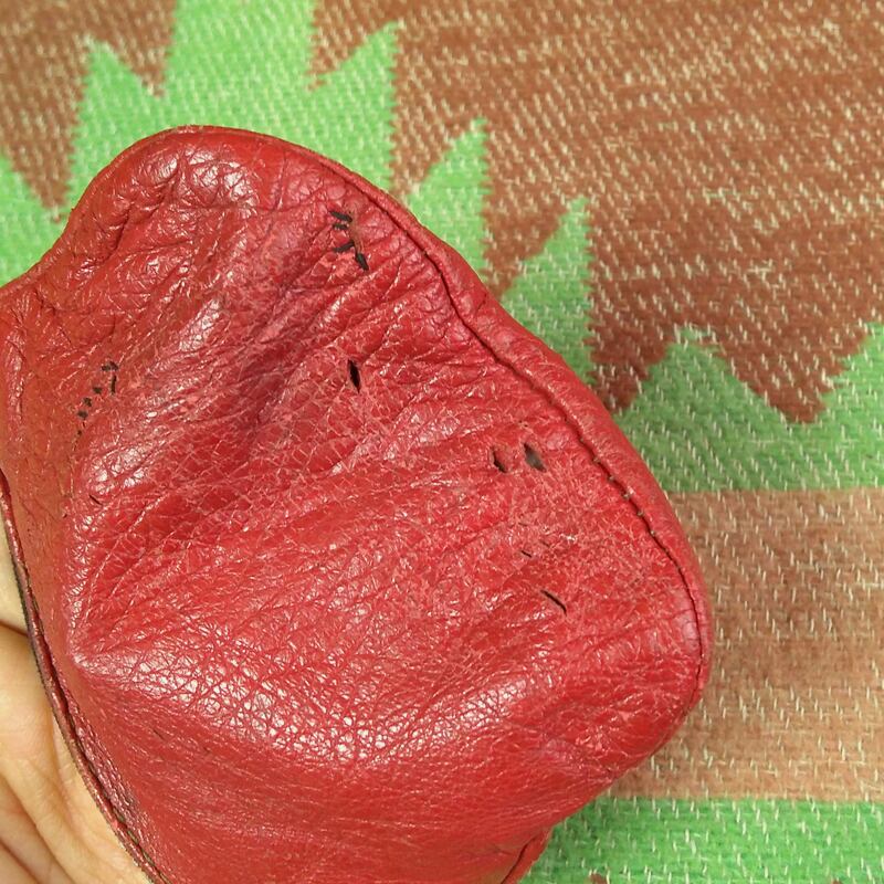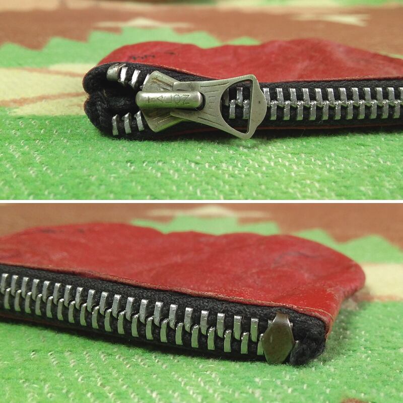 30年代のレザーパース。ラムスキンと思われる薄手で柔らかいレッドレザー。コインケースなどに良さそうなサイズ感です。TALONジッパー(ライン入り、オートロック)。