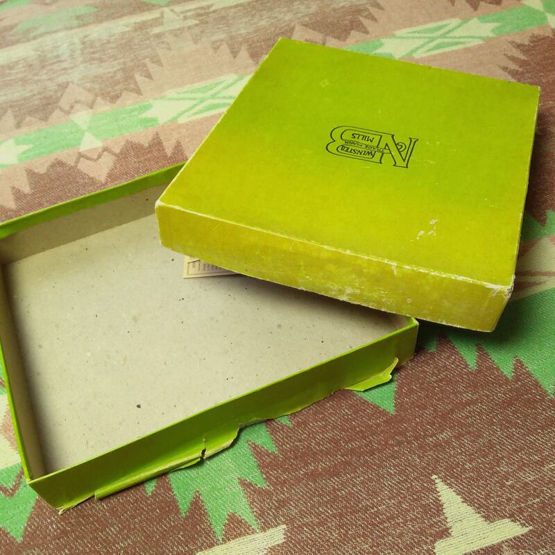箱付きデッドストック。右脇腹あたりを中心にシミ汚れがありますが、洗濯あるいは浸け置き等で軽減されると思います。完全には落ちなくても洗濯を繰り返すうちになじんで気にならなくなっていきますし、ヴィンテージ古着慣れされた方でしたら十分着こなせる程度と思います。※箱は色あせ・シミ汚れ・剥がれなどあります。