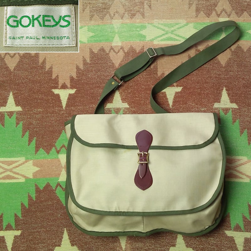 70年代前後の≪ゴーキー≫ショルダーバッグ。撥水・防水性を持たせたラバーボンディング コットンツイル生地。メイン収納とマチなしのサイドポケットが1つあります。日常使いにピッタリのサイズ感です。
