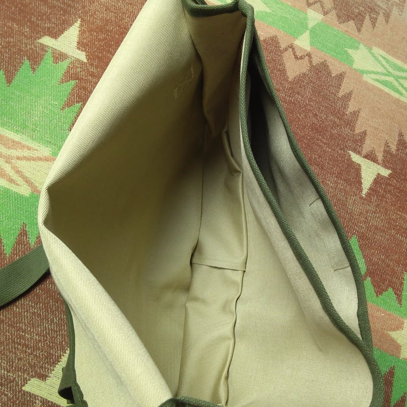 ほとんど使用感がなくデッドストックの可能性もありそうです。バックルの横あたり・フラップ向かって右・ストラップ右付け根に薄いシミ汚れがありますが、全体的にとてもきれいで良好なコンディションです。