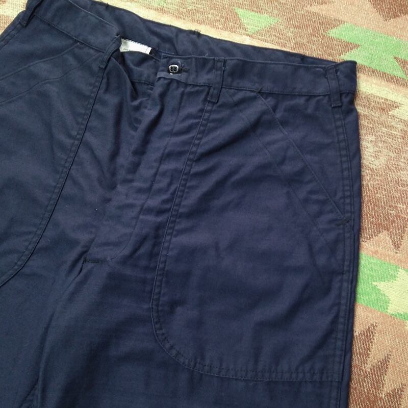 1971年≪USネイビー≫ユーティリティ トラウザーズ。丸みがあるパッチポケットが特徴のいわゆるベイカーパンツ型。ダークブルー(ネイビー)、表記なしですがコットン×ナイロンだと思います。CONMARジッパー。