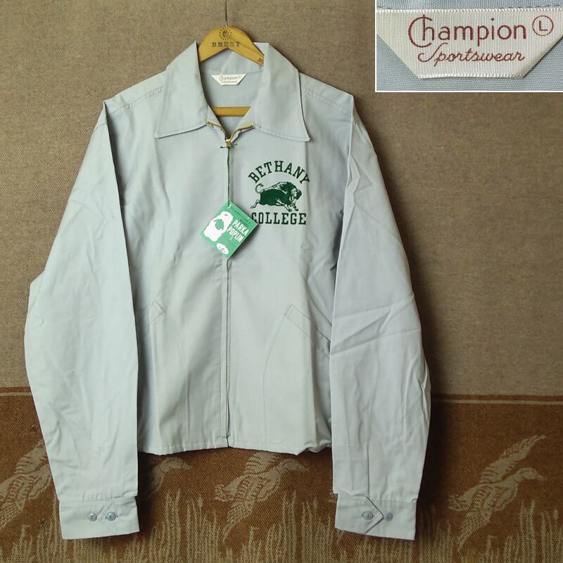 50s Champion College Flock Print Poplin Jacket(L)DEAD-STOCK チャンピオン スウィングトップ デッドストック