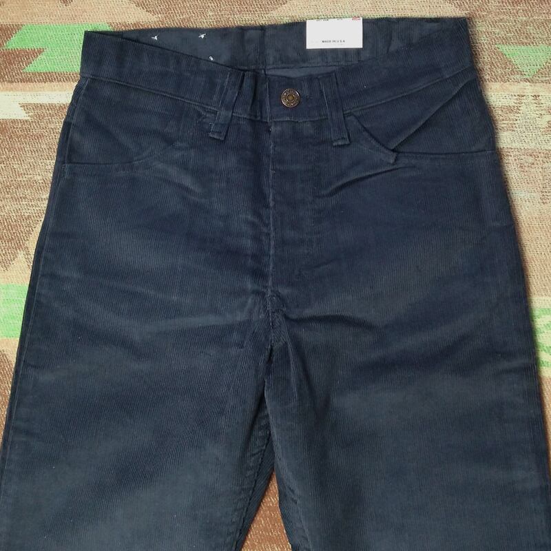 デッドストック。右膝裏などに多少の保管汚れはありますが、洗濯により軽減されると思いますし、ダークトーンですので目立つようなものではありません。特に問題のない良好なコンディションです。