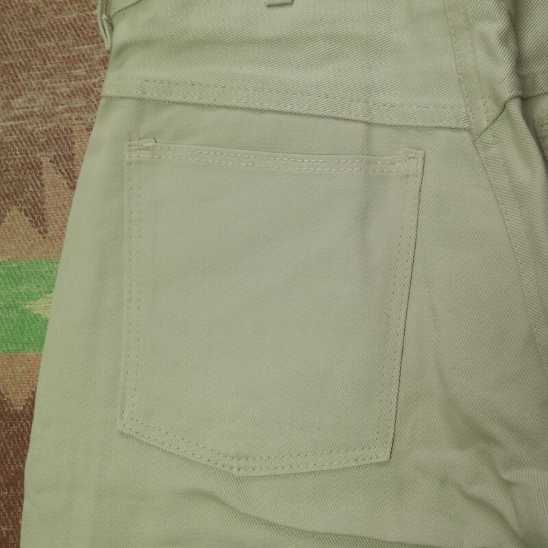60年代~の≪BIG BUCK(ELY & WALKER)≫ツイルパンツ。明るいベージュ色の100%コットンのツイル(カツラギ)、スリム・テーパード型。サイドシームダブルステッチ、42TALONジッパー。