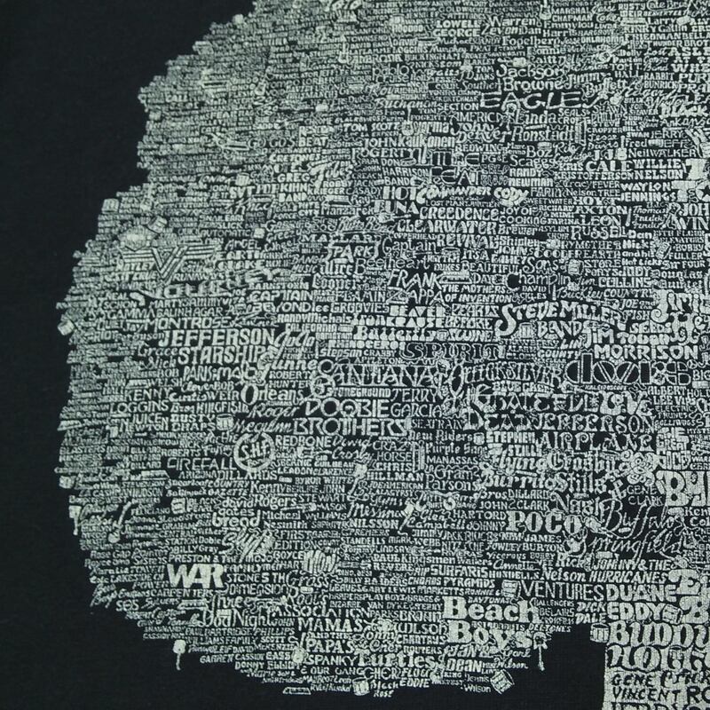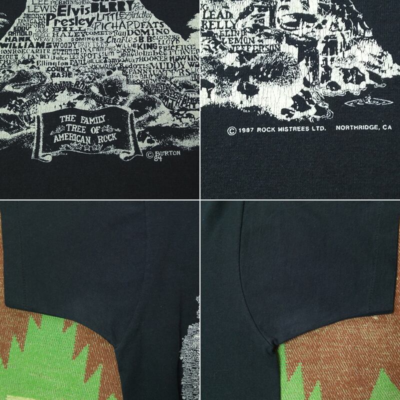 さまざまなパターンが存在するロックツリー柄。こちらはアメリカンロックのタイプです。エルビスプレスリー・チャックベリー・リトルリチャードらを中心にそうそうたるメンバーが木のデザインを構成しています。