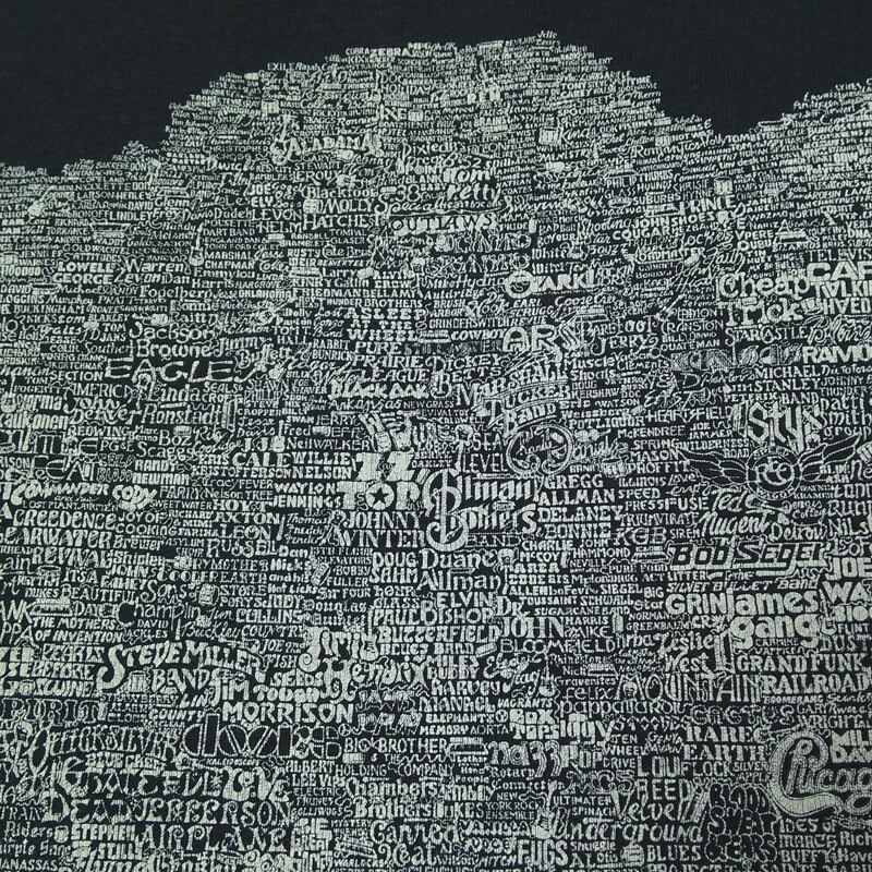 80年代~の≪ファミリー ツリー オブ ロックンロール≫プリントTシャツ。タグ欠損ですが、スクリーンスターズの黒タグ(50%コットン×50%ポリエステル・MADE IN USA)ボディだと思います。