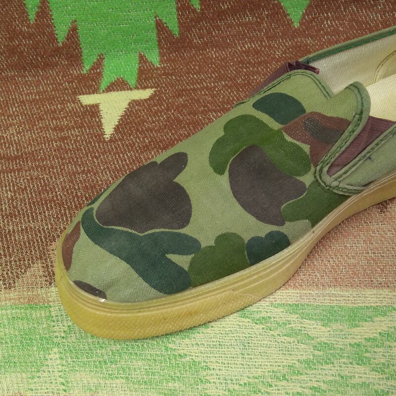 70年代~のスリップオン(スリッポン)スニーカー。ダックハンターカモ柄のキャンバス生地、ガムソール。MADE IN USA