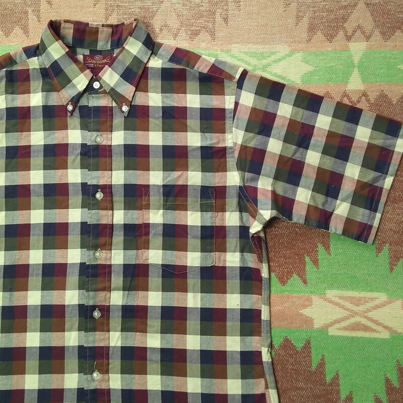 60s VAN HEUSEN 417 B/D Plaid Cotton Shirt(M)DEAD-STOCK