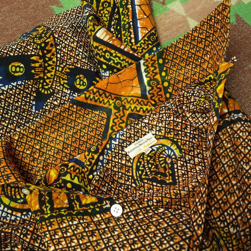 1950s~ Hathaway HISTORICAL AFRICAN PRINT Cotton Shirt