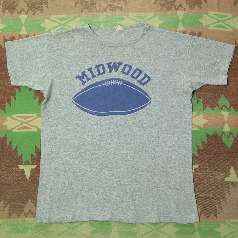 50s Champion MIDWOOD FOOTBALL Print Gray Heather T-Shirt(46) チャンピオン 染み込みプリント フットボール Tシャツ